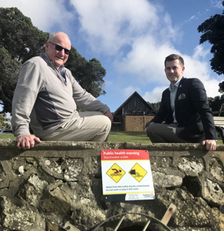 The new signage at Takapuna Beach advises people not to swim or play in water coming out of public stormwater outlets.