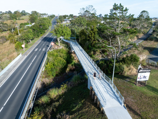 A new footpath and pedestrian bridge enables residents to walk from Rodney Street to Centennial Park without having to cross busy State Highway 1.