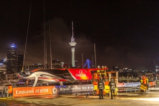 Emirates Team New Zealand christened their first AC75 at their team base in the heart of the America’s Cup village in Auckland today.