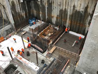 The first two concrete base slabs for the City Rail Link twin tunnels have been laid on Lower Queen Street.
