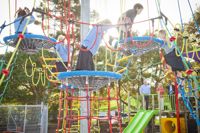 There’s room for bigger kids to play or relax, as the bark and astroturf surface of the playground is surrounded by an open grass space perfect for games.