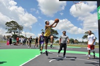 Basketball players from Harbour Basketball christened the court with a full court demonstration game.