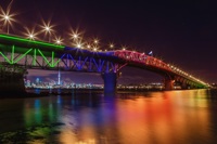 The large steel girder sections were partially pre-assembled, then floated into place on construction barges.