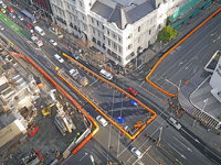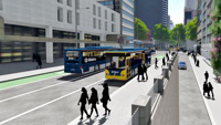 Vehicles have their own lane through Lower Queen Street to access Tyler and Galways Streets, either side of Britomart Station.