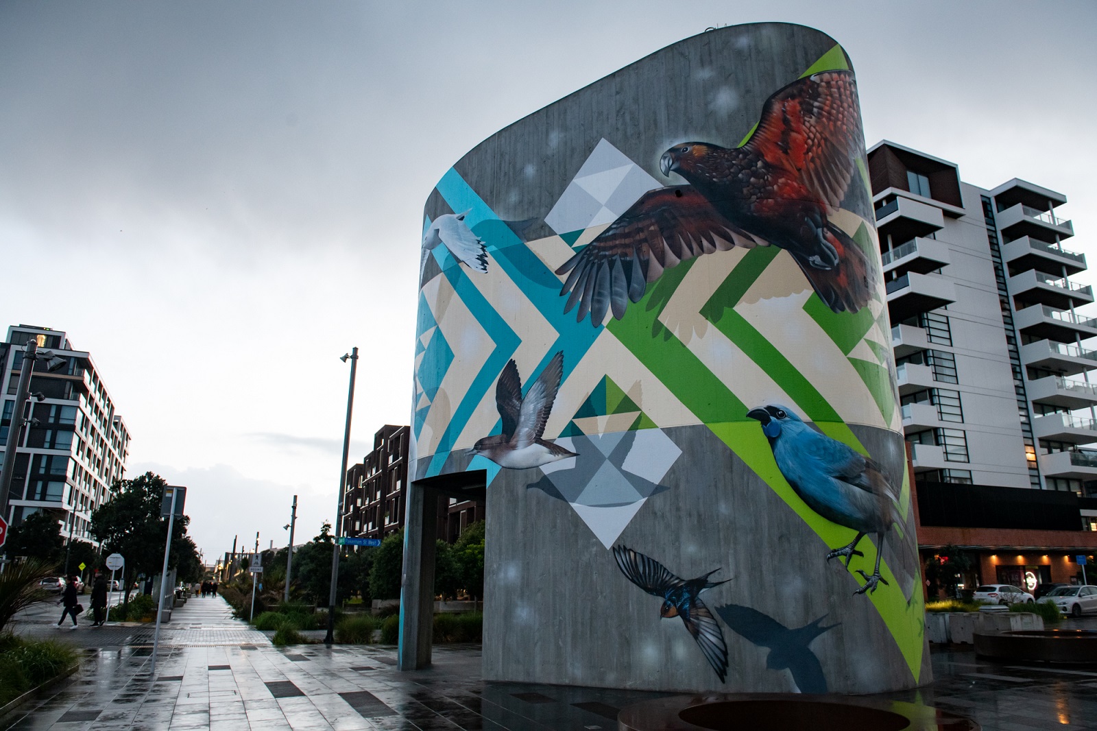 Wynyard Quarter’s pump station in Amey Daldy Park has an exciting new look inspired by Aotearoa’s manu māori, our native birds.