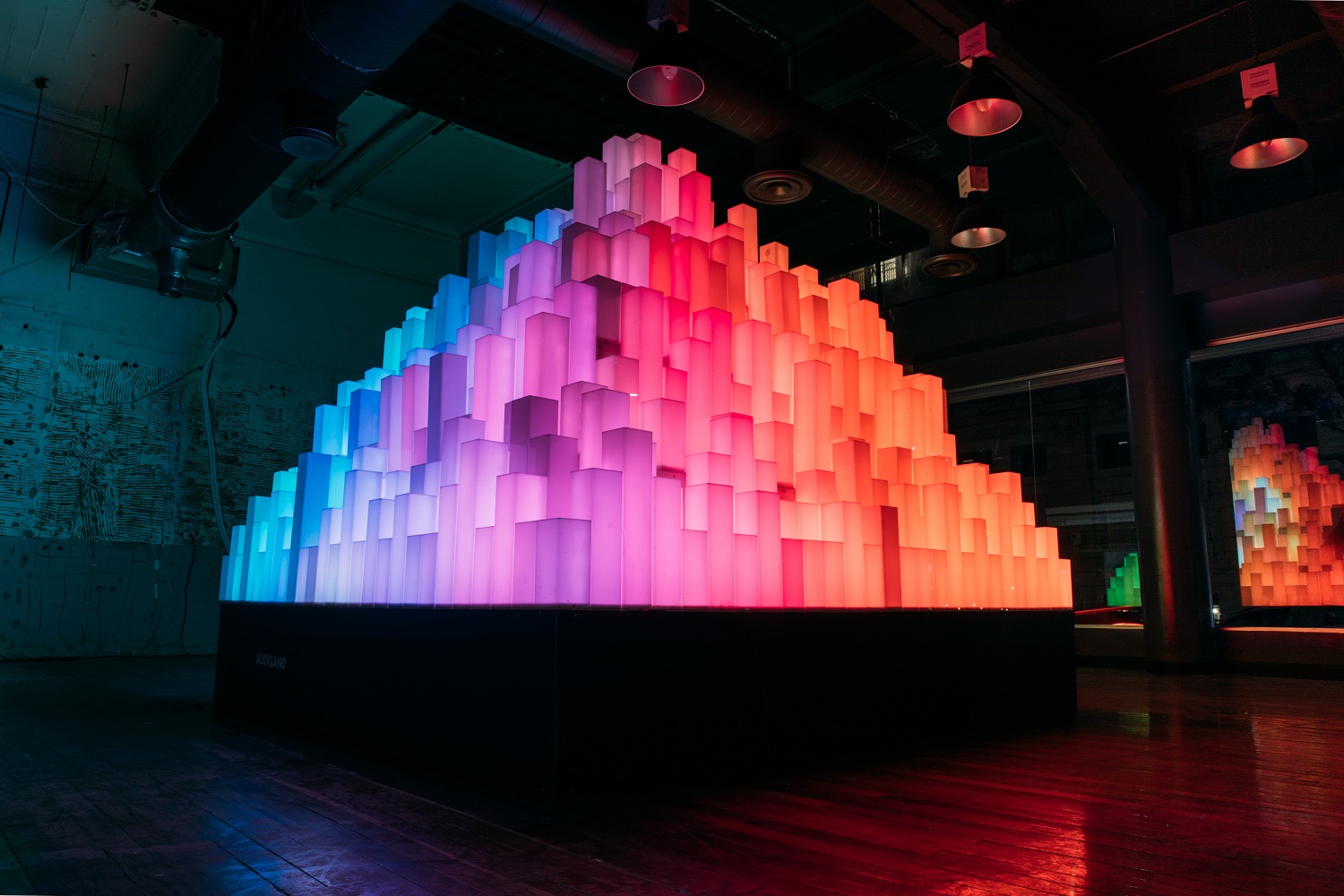 Mountain of Light (pictured) by Angus Muir was commissioned for Vivid in Sydney in 2016. Since then, it has toured to London, Perth, Queenstown, New Plymouth, Kaiwaka and Auckland Light festivals.