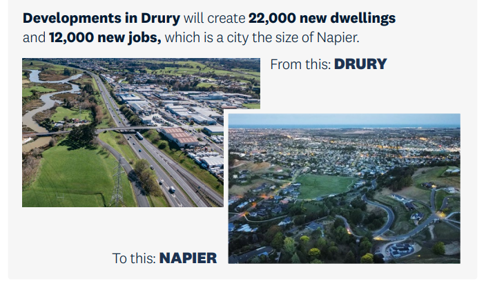 We have included plans for $400 million of investment in local and arterial roads as well as parks and community facilities in the Drury area in the next ten years and a further $2.1 billion to be delivered beyond 2031. This totals an investment of $2.5 billion in the next 30 years. Under the new draft policy, development contributions will rise from between $11,000 to $18,300 currently, to $84,900. This ensures developers in Drury pay a fair share of costs. The alternative is for these costs to be met by ratepayers.