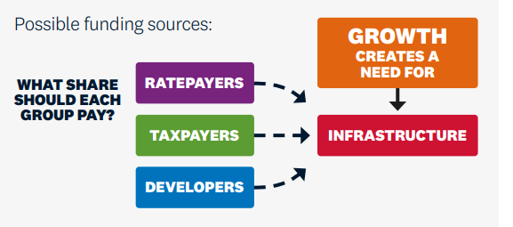 - ensure ratepayers don’t have to bear all the costs of growth.