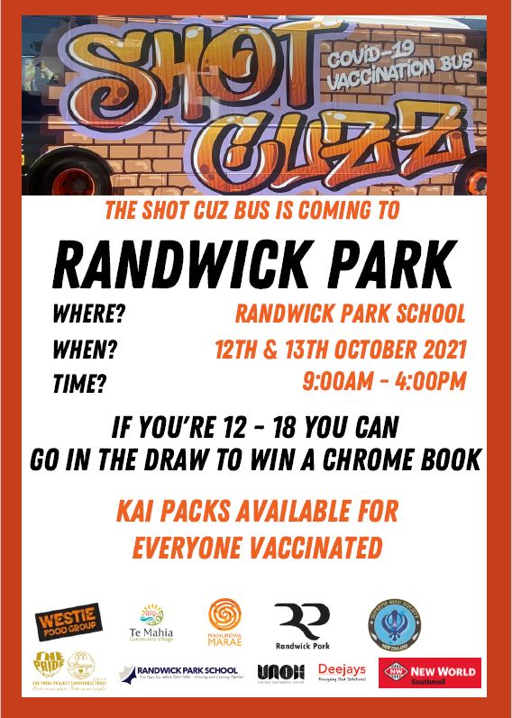 Fresh from visits to Papakura and James Cook high schools the Manurewa Marae team will take the vaccination bus to Randwick Park School on 12-13 October from 9am-4pm.