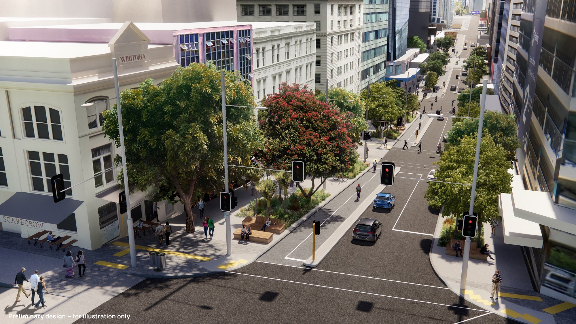 “For stage one between Albert and Queen Streets, Auckland Transport is planning significant upgrades to bus infrastructure, the streetscape and the pedestrian environment.