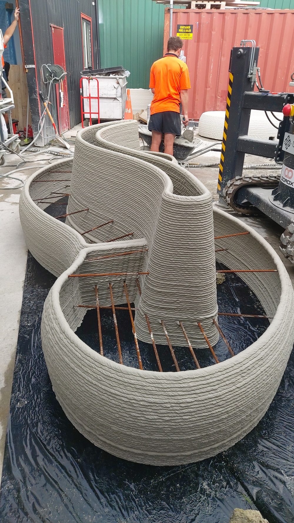 Four concrete seats have been 3D-printed off-site demonstrating the potential of this new technology. Each of the seats will contain around 40 repurposed car tyres, minimising the use of concrete and diverting the waste rubber away from landfill.