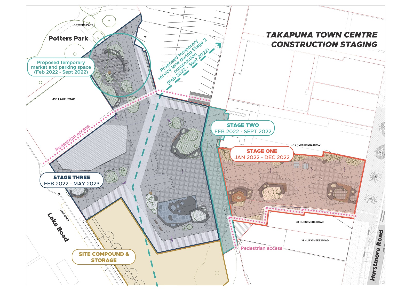“We are aware that there has been, and continues to be, considerable public and private works going on in Takapuna. Our approach to the town square construction will happen in three stages to minimise works, noise and disruption as much as possible to allow locals to continue enjoying life in Takapuna. Access to local businesses and facilities, such as the bus stop on Lake Road and the public toilets at 34 Hurstmere Road will remain,” added Kate Cumberpatch.
