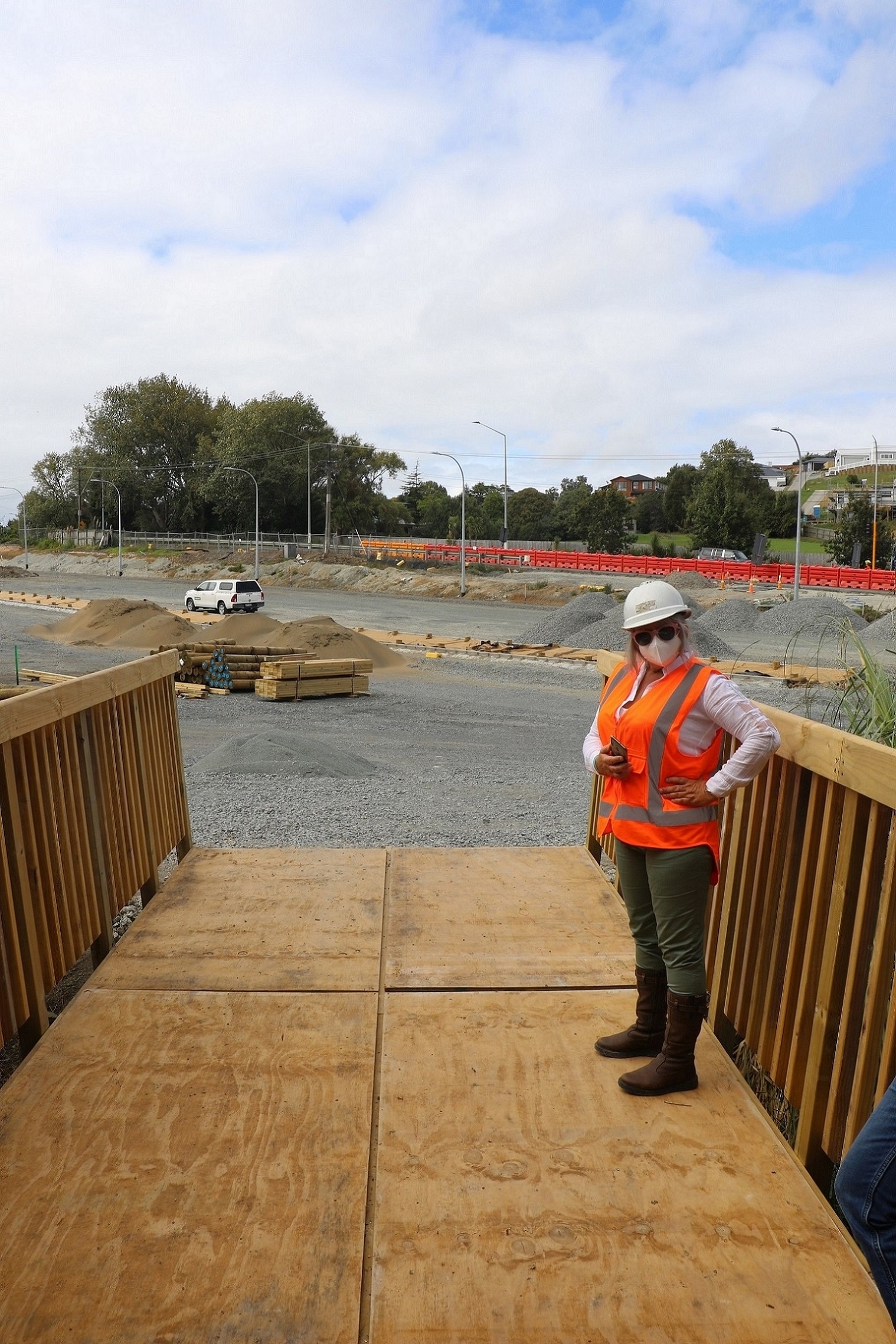 Rodney Local Board deputy chair Beth Houlbrooke onsite at Warkworth's new transport hub.