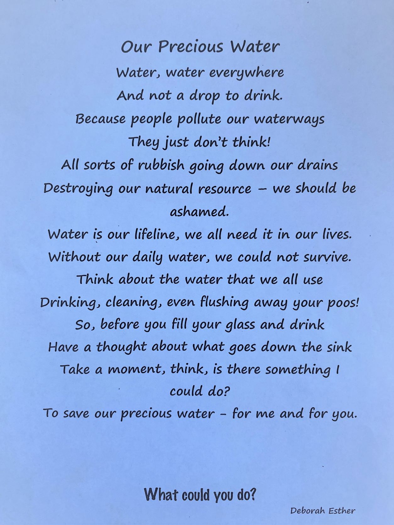 The school children enjoyed writing poems and learning about how stormwater and contaminants in the stream can be impacted to raise awareness that stormwater catch-pits are for rainwater only.