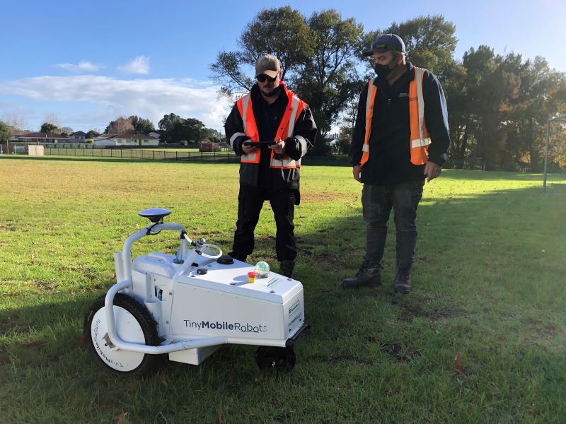Bob is the name tamariki from the kura gifted Citycare Property’s new robot when staff marked the fields.