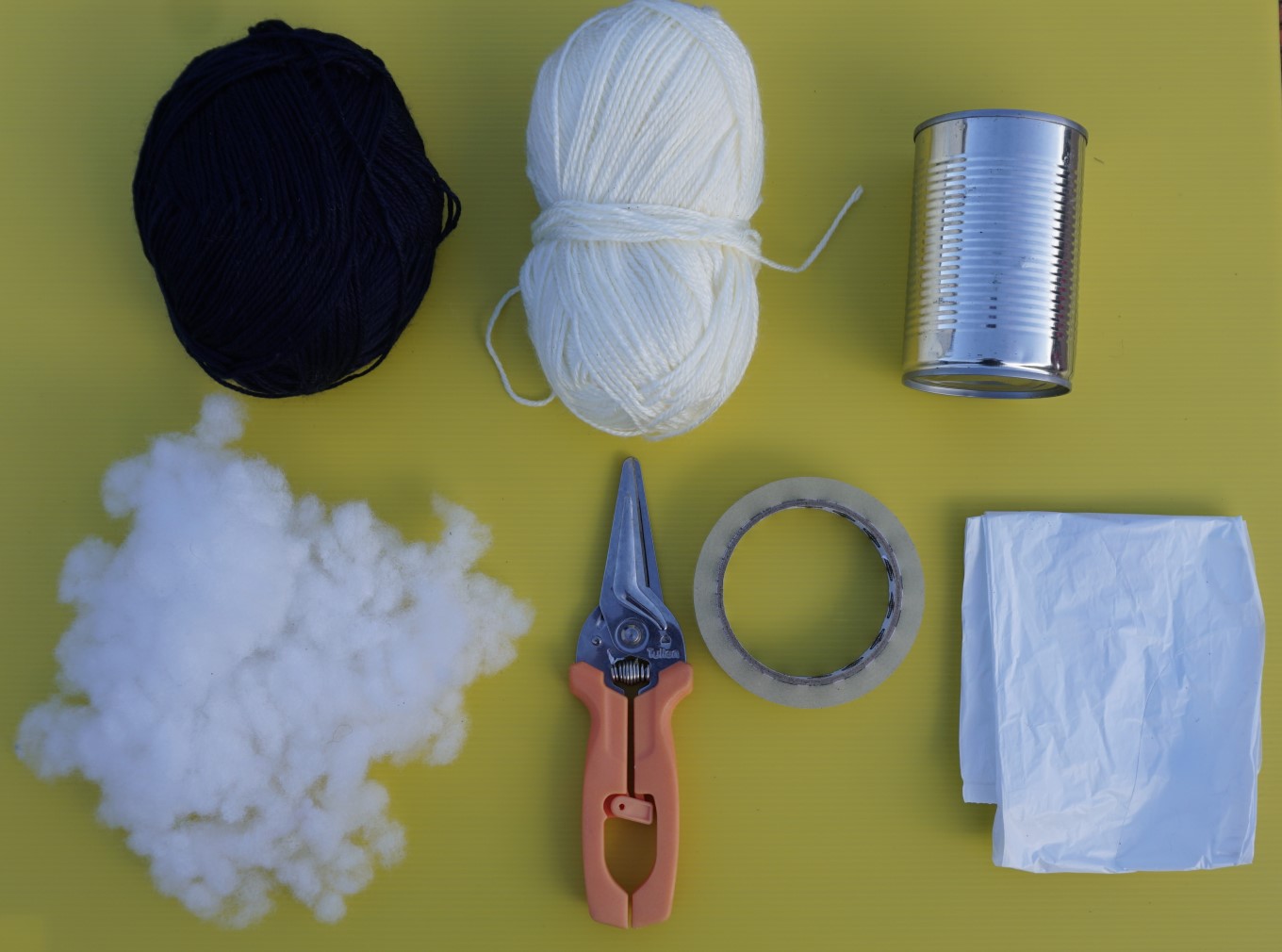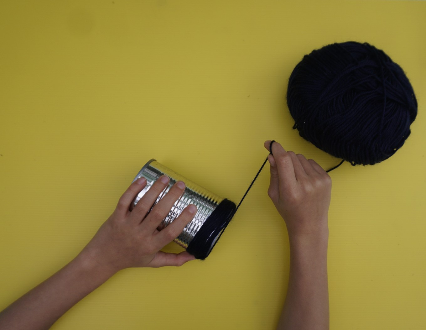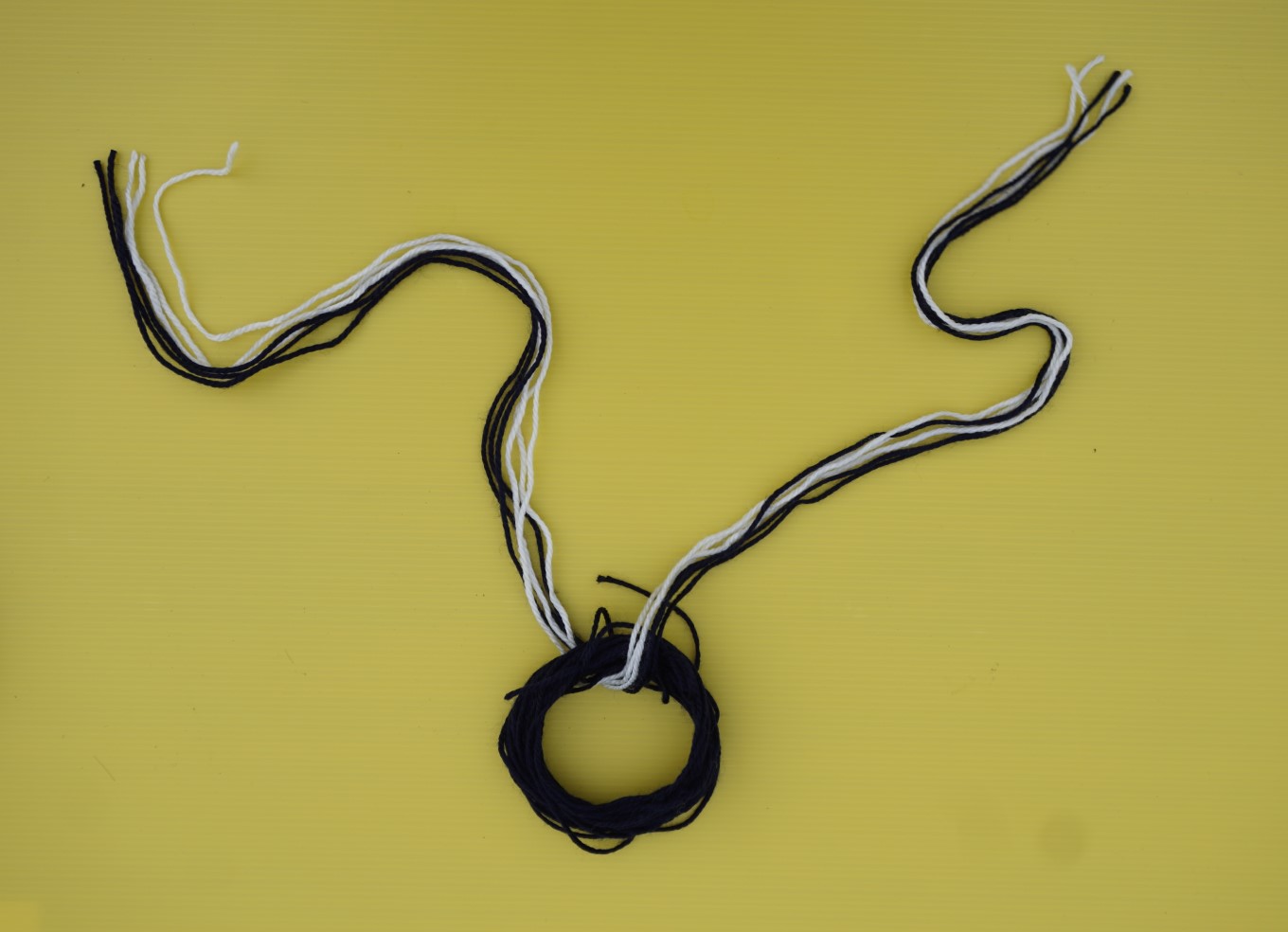 Slide the circle of wool off the can and thread your nine lengths of wool evenly through the circle.