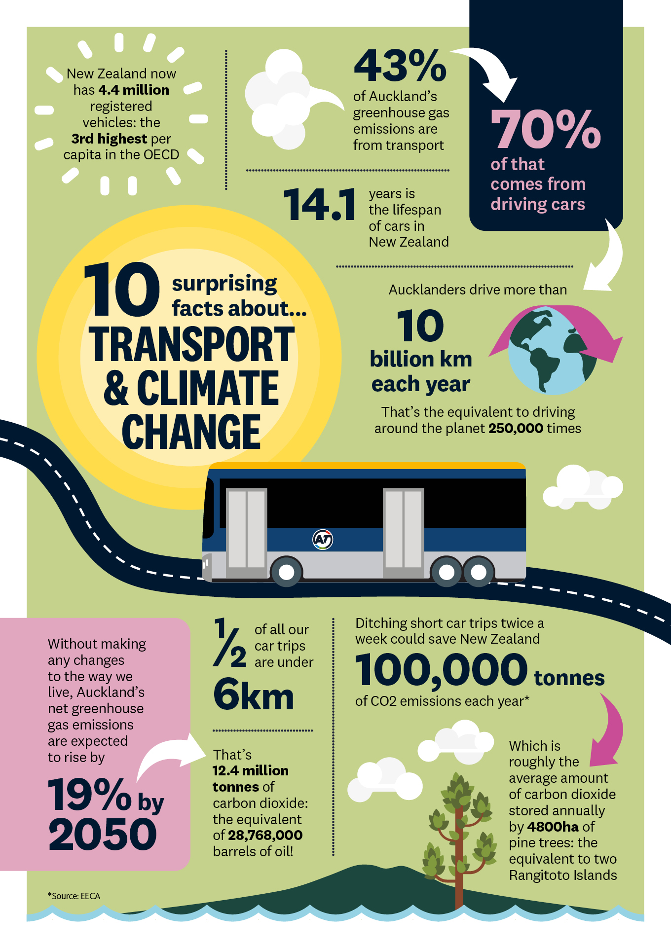 “Research shows that many New Zealanders think recycling and producing less waste is the best thing they can do to prevent climate change,” says Hawcroft. “And while that is an awesome thing to do, it won’t have as much impact on emissions. Driving less will.”