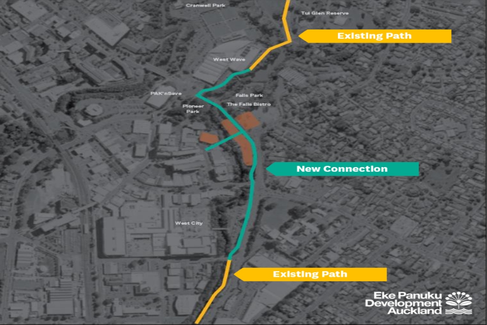 The design connects the current gap in walking and cycle paths between Tui Glen Reserve (behind Westwave) and Vitasovich Avenue, along Edmonton Road. It will now move into developed design phase taking it to resource consent level.