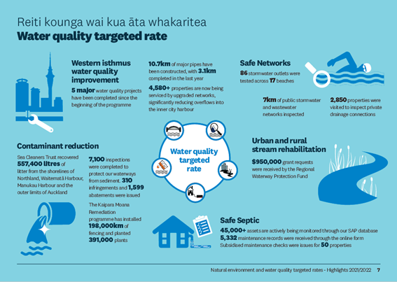 Another $452 million was committed for a water quality targeted rate for new water infrastructure to clean up our beaches, harbours and waterways.