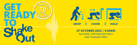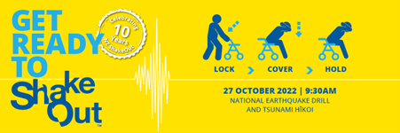 New Zealand ShakeOut, our national earthquake drill and tsunami hikoi is taking place on Thursday 27 October 2022 at 9.30am.