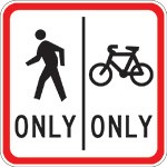 In segregated shared paths people riding bikes must stick to the side of the path marked for bikes.