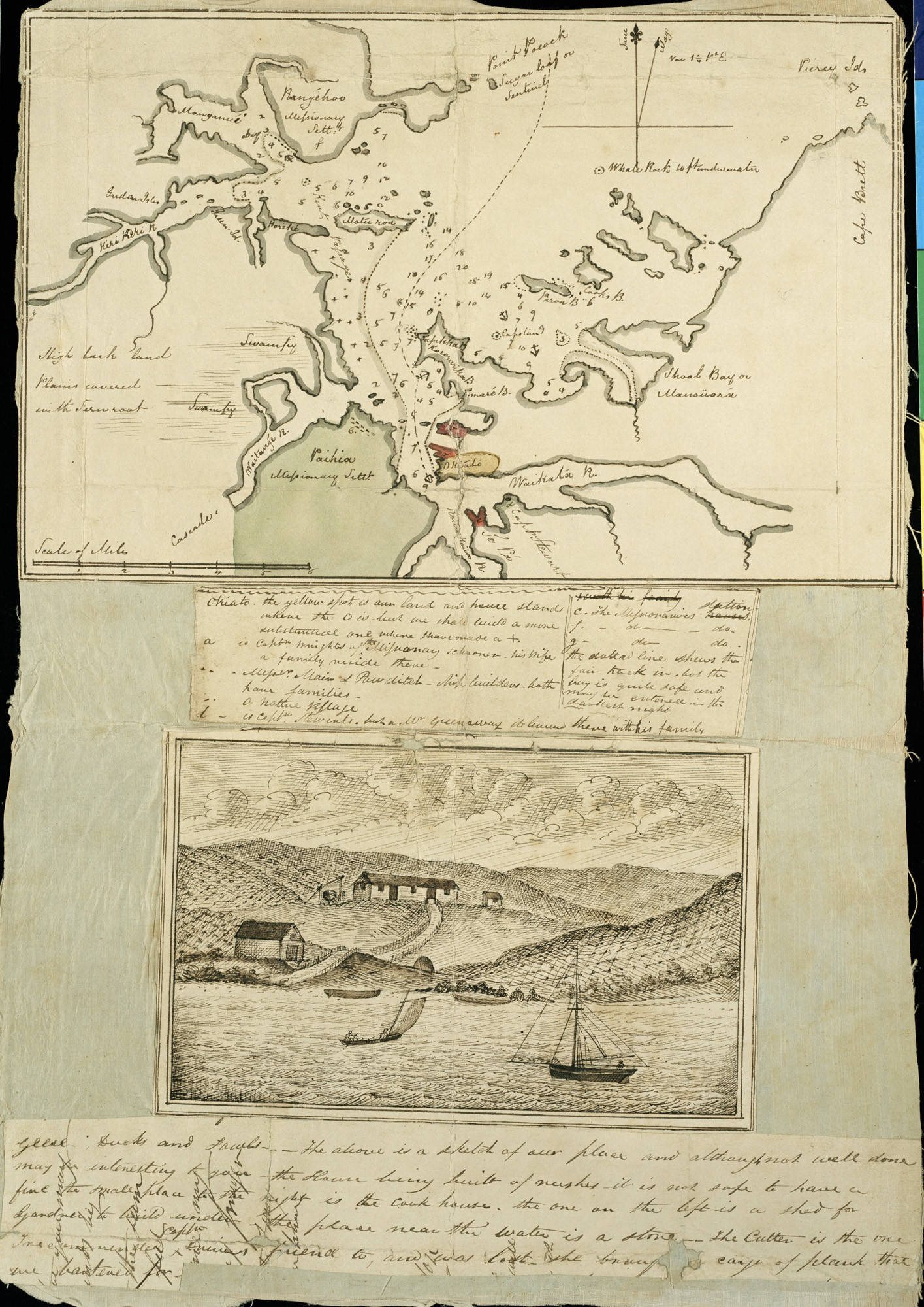 Manuscript map and sketch of property at Okiato, Bay of Islands. 1833. Auckland Libraries Heritage Collections, NZMS 849/1/8; Map 5449.