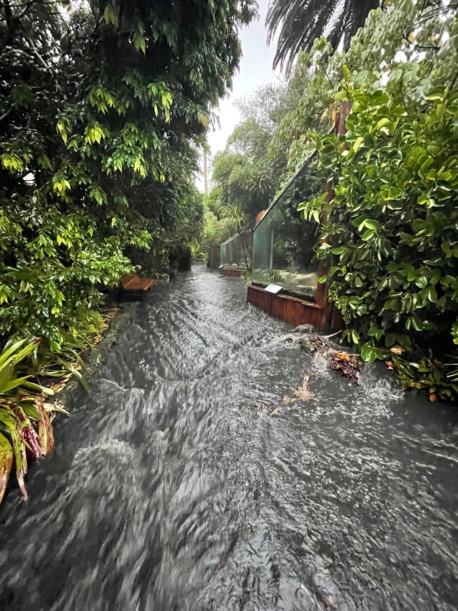 On Friday afternoon, as the normally placid Motions Creek which traverses the Zoo continued to rise, our Auckland Zoo teams began the relocation of reptiles from lower lying areas.