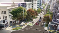 Victoria Street will become a tree-lined walking street with one lane of cars in each direction, greater visibility of Māori art and design (learn more here) and more places for people to sit and relax.