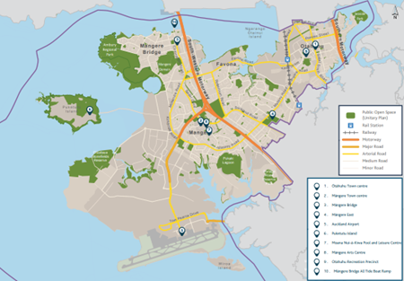 The Manukau Harbour and the Tamaki Estuary surround three sides of the Māngere-Ōtāhuhu Local Board area. The area includes the coastal township of Māngere Bridge, the Māngere and Ōtāhuhu town centres, as well as the Favona and Māngere East town centre and suburbs.
