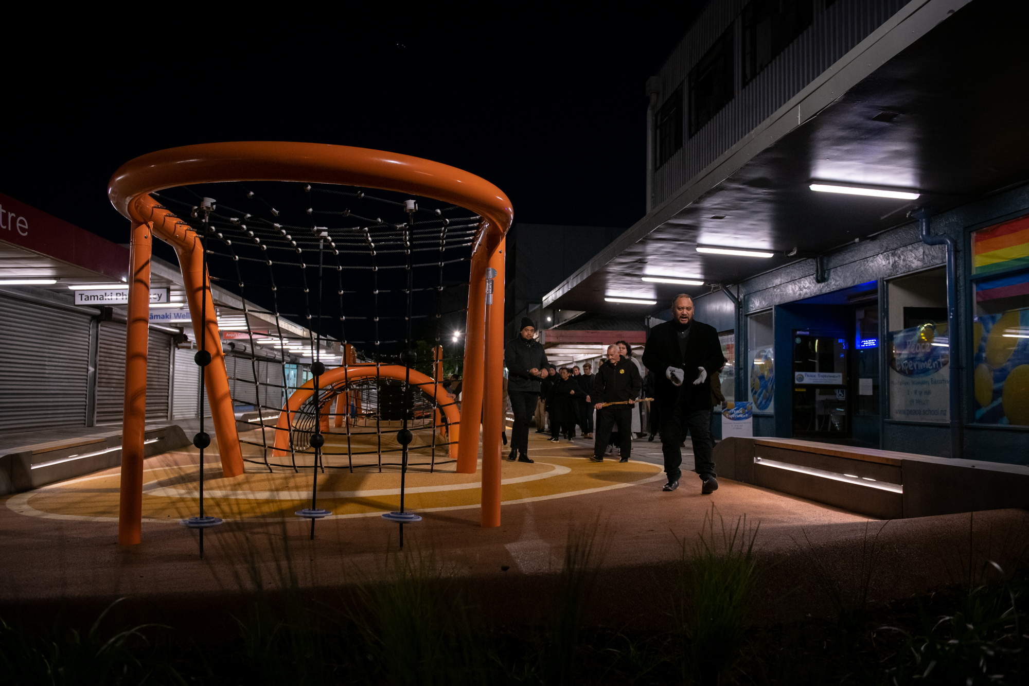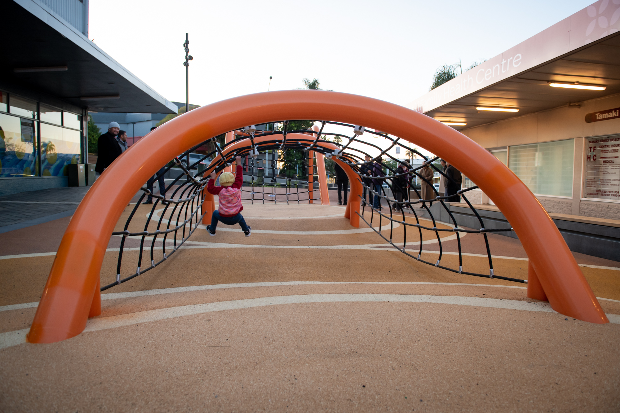 Delivered in partnership with mana whenua, the project incorporates the story of the eight-tailed taniwha Moko Ika Hiku Waru into the playground’s design as a cultural anchor for the space.