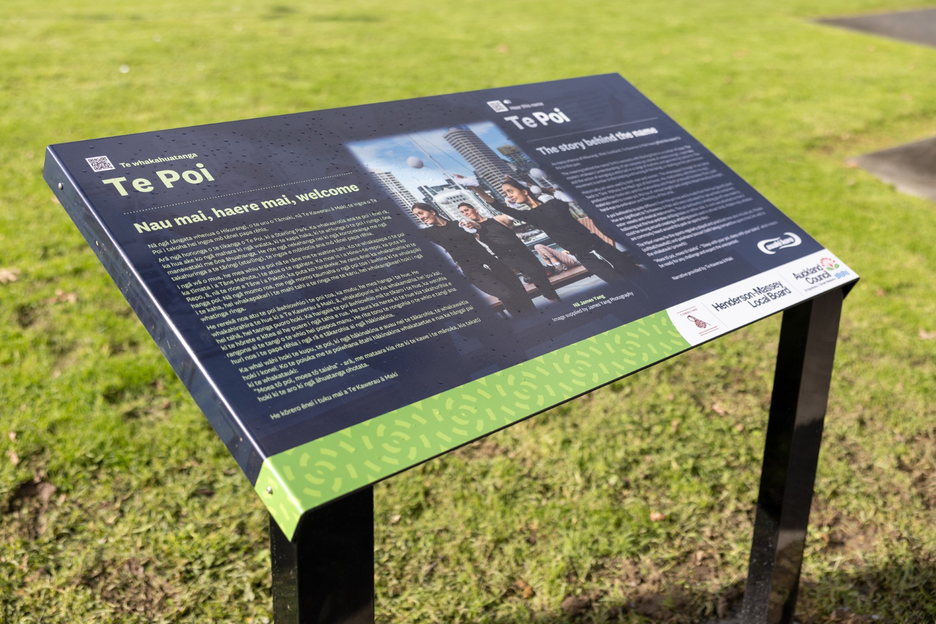 Te Poi was named by local iwi Te Kawerau ā Maki, mana whenua of Hikurangi (West Auckland). As part of Auckland Council’s commitment for te reo Māori to be seen, heard, spoken and learnt in our public places, a full suite of bilingual signage has been installed throughout this park.