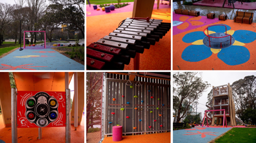 Accessibility peer reviews by Ben Richards and Be Accessible covering all of the play aspects, and many of the suggestions put forward during this were integrated into the final design. As a result, the playground provides a high level of universal access and a range of inclusive play opportunities for a wide variety of ages and abilities. These include:
