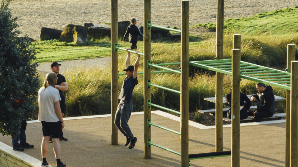 Onehunga Bay Reserve’s upgrade is now complete with a pump track and basketball half court, in addition to the refurbished outdoor fitness equipment area.