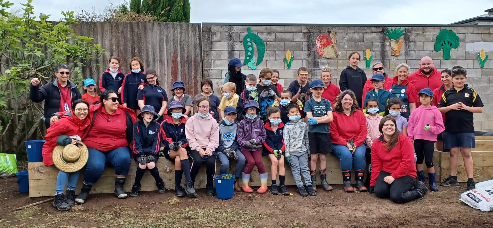 Bunnings Warehouse support centre team members left the meetings and spreadsheets behind to become teachers as they joined Garden to Table and Auckland Council Sustainable Schools members to build 10 new raised garden beds.