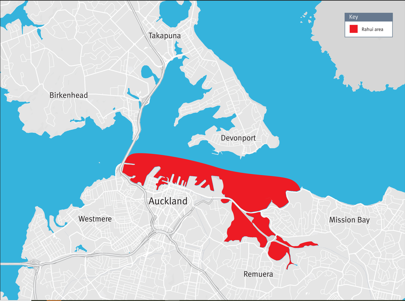 The rāhui remains in place at Ōkahu Bay, Te Tinana / Wilsons Beach, Judges Bay, St Mary's Bay and Masefield Beach reserve at Curran Street.