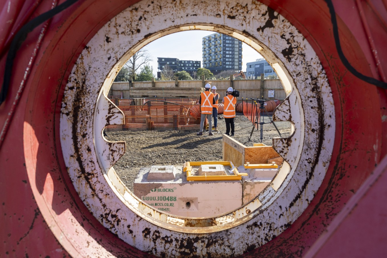 In 2023 the work was complete. The machine had tunnelled a distance of 550m underground from Rankin Avenue, New Lynn to an outfall in Manawa Wetland Reserve, enabling a large-scale residential housing development to begin.
