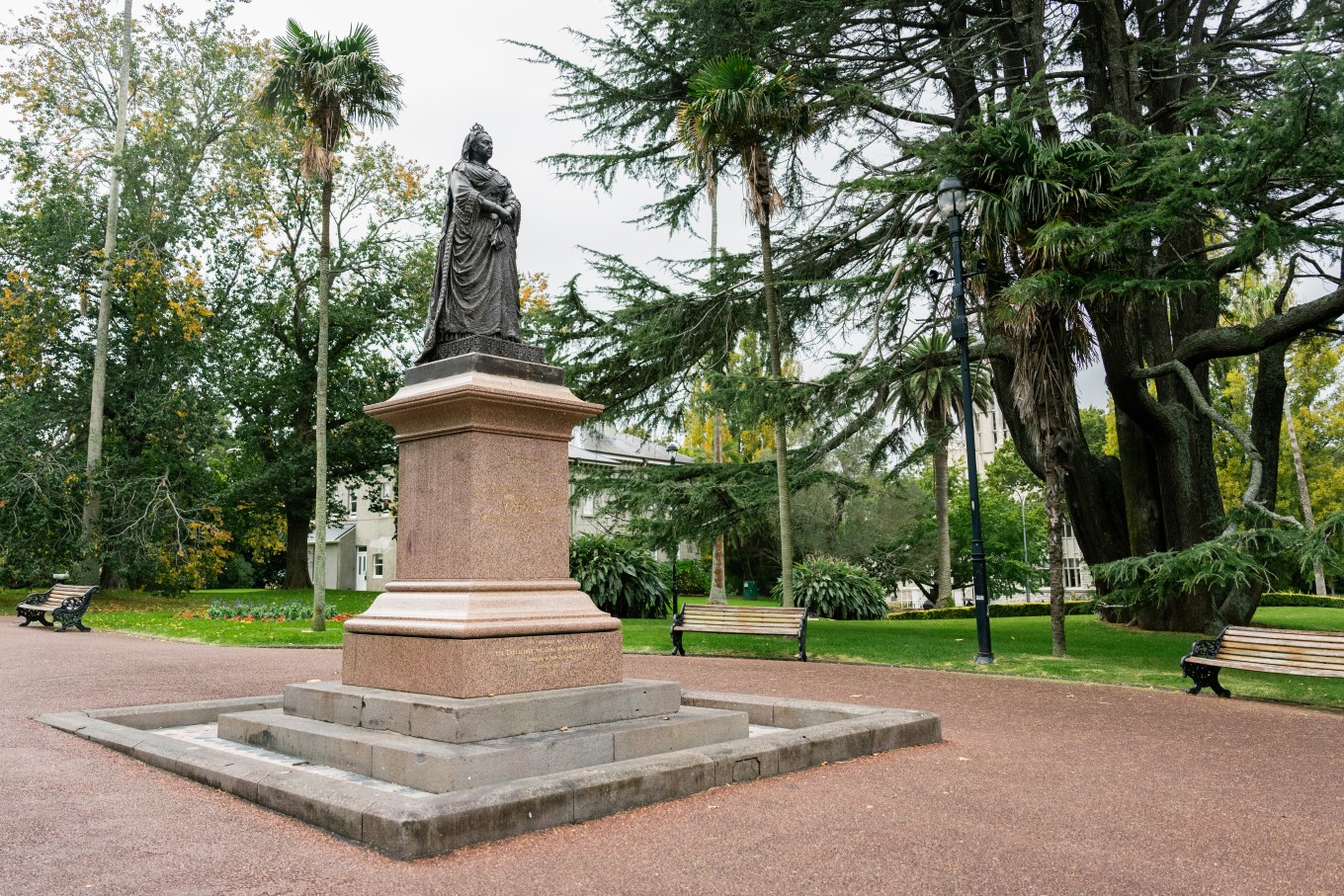 The heritage-listed bronze statue of Queen Victoria created by British sculptor Francis John Williamson was erected in 1897. The park has several other connections to the British monarchy, including oaks grown from acorns gathered from Windsor Great Park, and the flower clock which created for the royal tour of Queen Elizabeth II, who also planted a rimu in the park while visiting New Zealand.