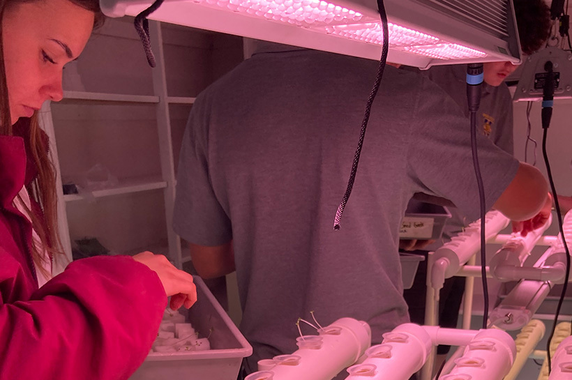 Led by horticulture teacher Doug Johnson, year 11 primary industry students built a vertical hydroponic garden, using water supply systems, the extra funding allowing them to develop a propagation room and buy more equipment, including solar panels for the growing tube lights, and a rainwater collection tank.