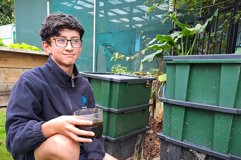 Year seven and eight ‘Education for Sustainability’ students worked with technology teacher Linda Le Verne, conducting a waste audit that revealed 79% of the school’s waste could have been kept out of landfill, including the nearly 5kg of food scraps and compostable paper created each day.