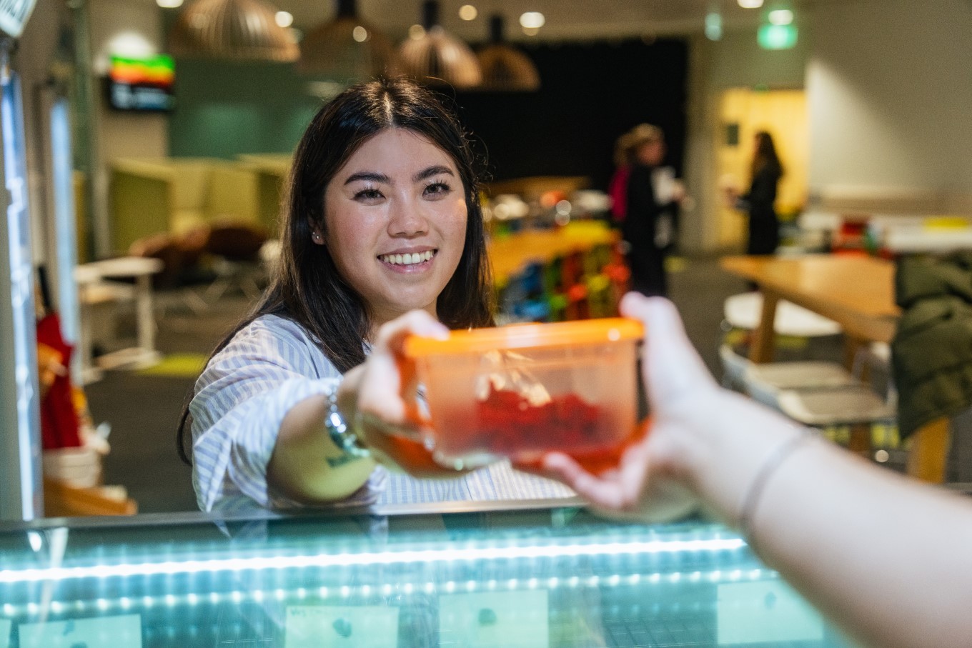 “I often bring my container with me and ask the cafe to put food into a box, or I choose things that come in a paper bag, such as cookies.”