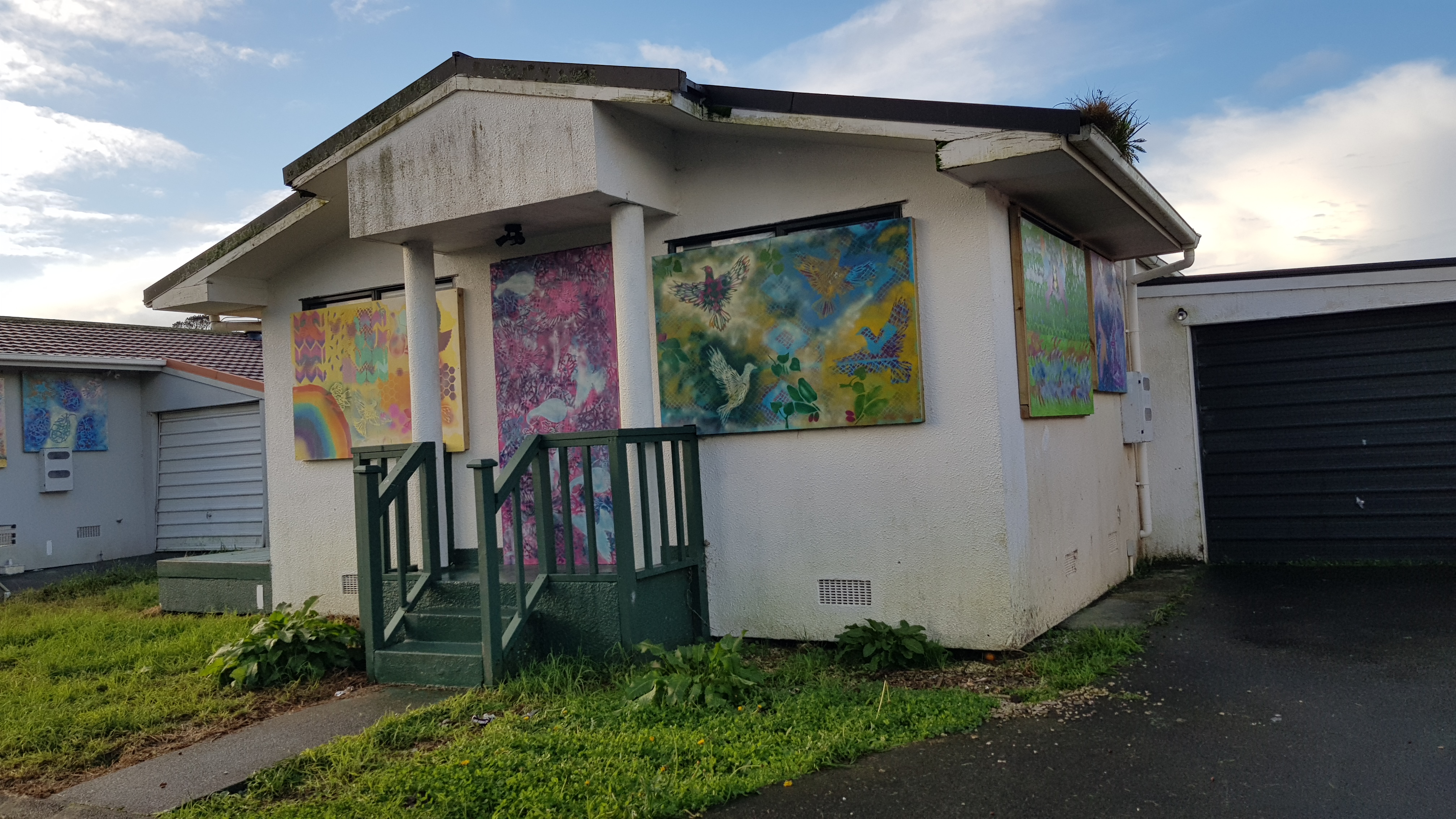 For the other two houses, Jewelz Petley, Kaiarahi Hapori (Convenor) from Te Kawerau ā Maki Iwi Tiaki Trust, who also works with the Recovery Office, reached out to acclaimed artist Charlotte Graham. Charlotte has ancestral ties to the iwi and suggested turning this into a community event where everyone can get involved.