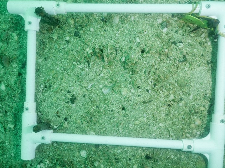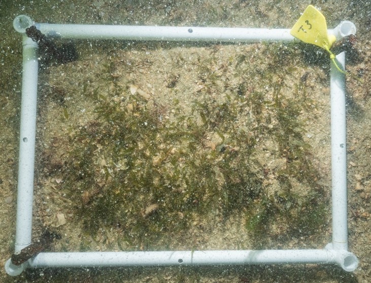 Underwater photographs of quadrat T3 (first shot above) on 24 June 2024 showing extensive cover of Caulerpa parvifolia and on (above) 31 July 2024 showing minimal remaining C. parvifolia cover after two treatments with UV-C.
