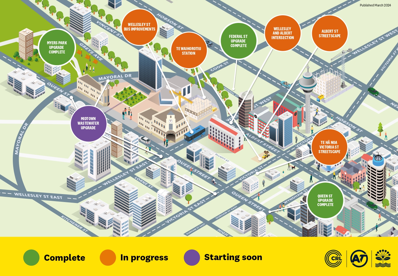 Over the next 18 months the Auckland Council Group, Vector and City Rail Link Ltd will continue to work together to transform midtown, with exciting milestones to look forward to along the way:
