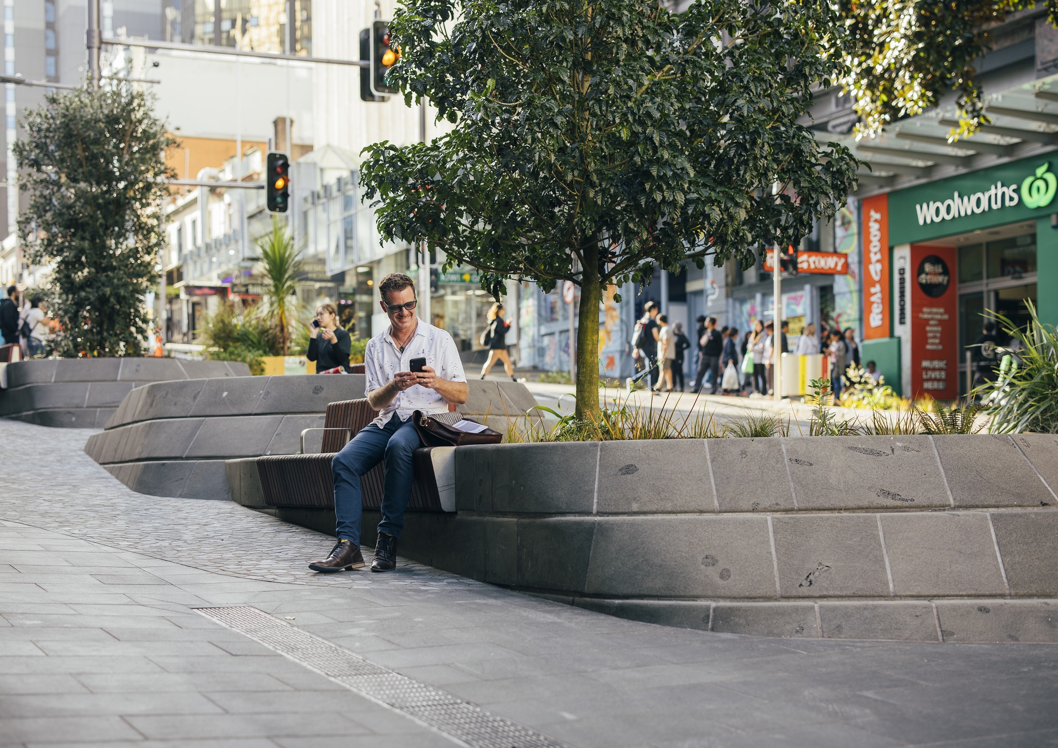 Policy and Planning Committee Chair Councillor Richard Hills says people have already been commenting on the new mature trees and gardens in the street, with places to sit and enjoy the city centre.