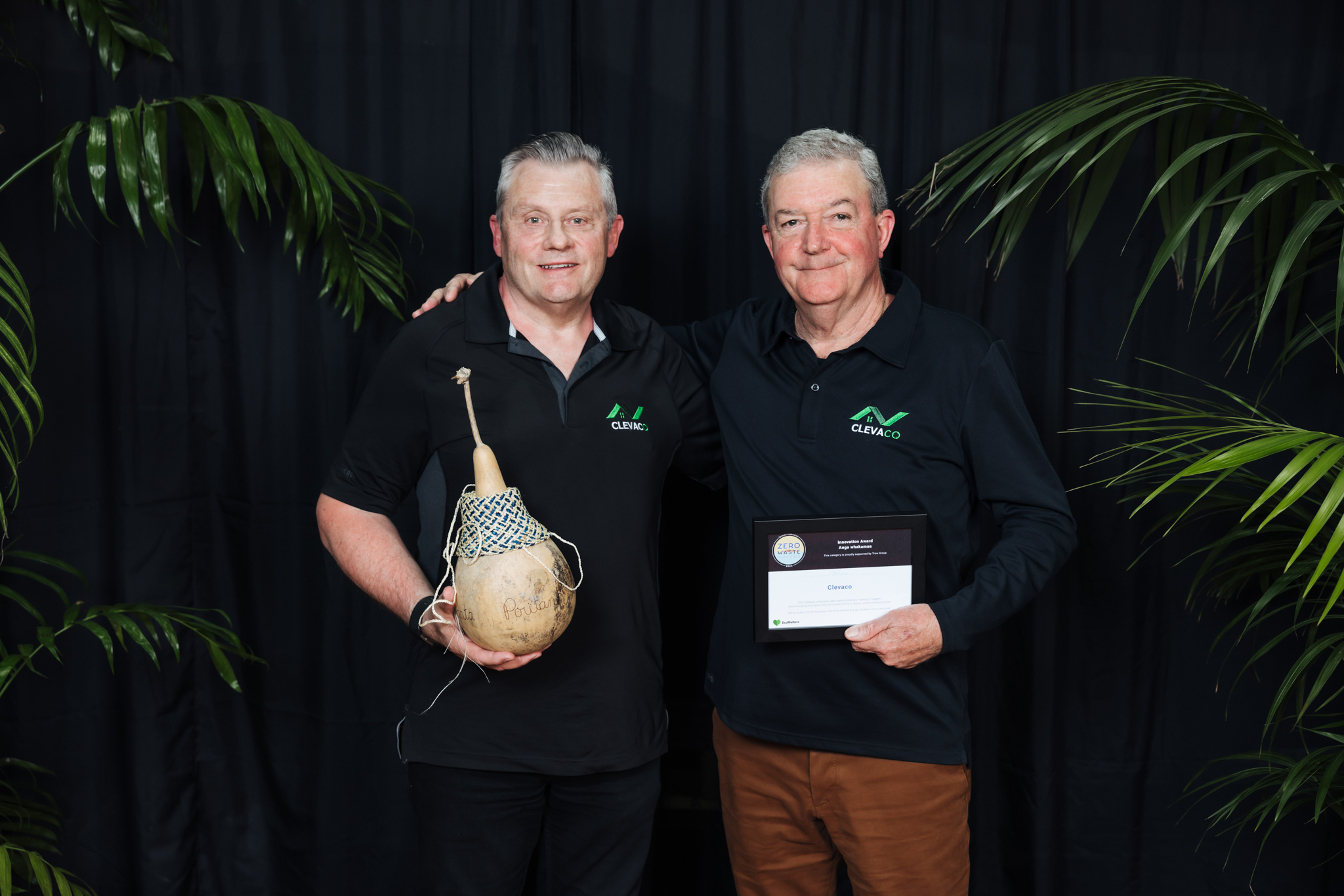 L-R: Andrew Minturn and Grant Brown of Clevaco, winner of the Innovation - Anga whakamua award.
