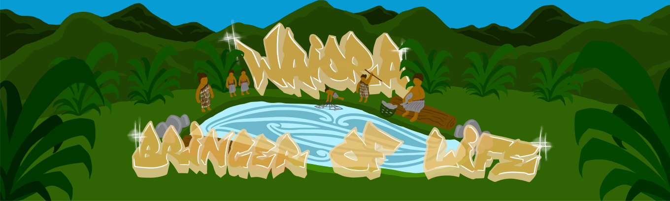 “It was an honour to collaborate with a team and bring my own style to personify the forms of wai through this project. Creating this art helped me to reconnect with the Waihorotiu, to think more deeply about it, appreciate it and look after it, I hope it does the same for other people too.”