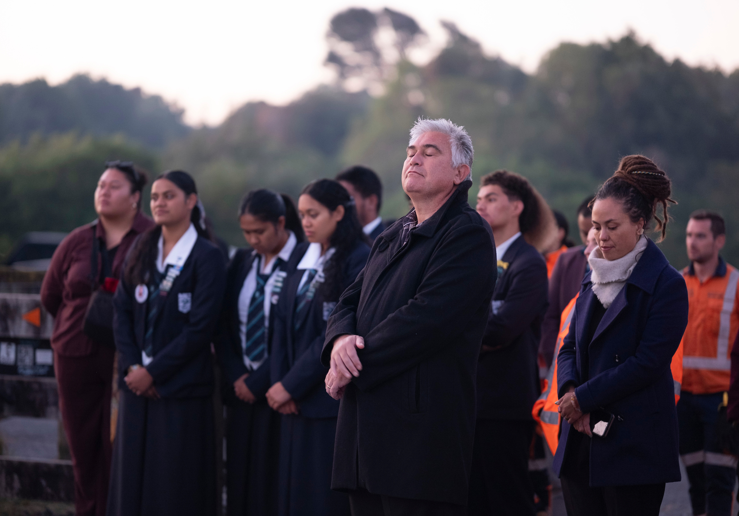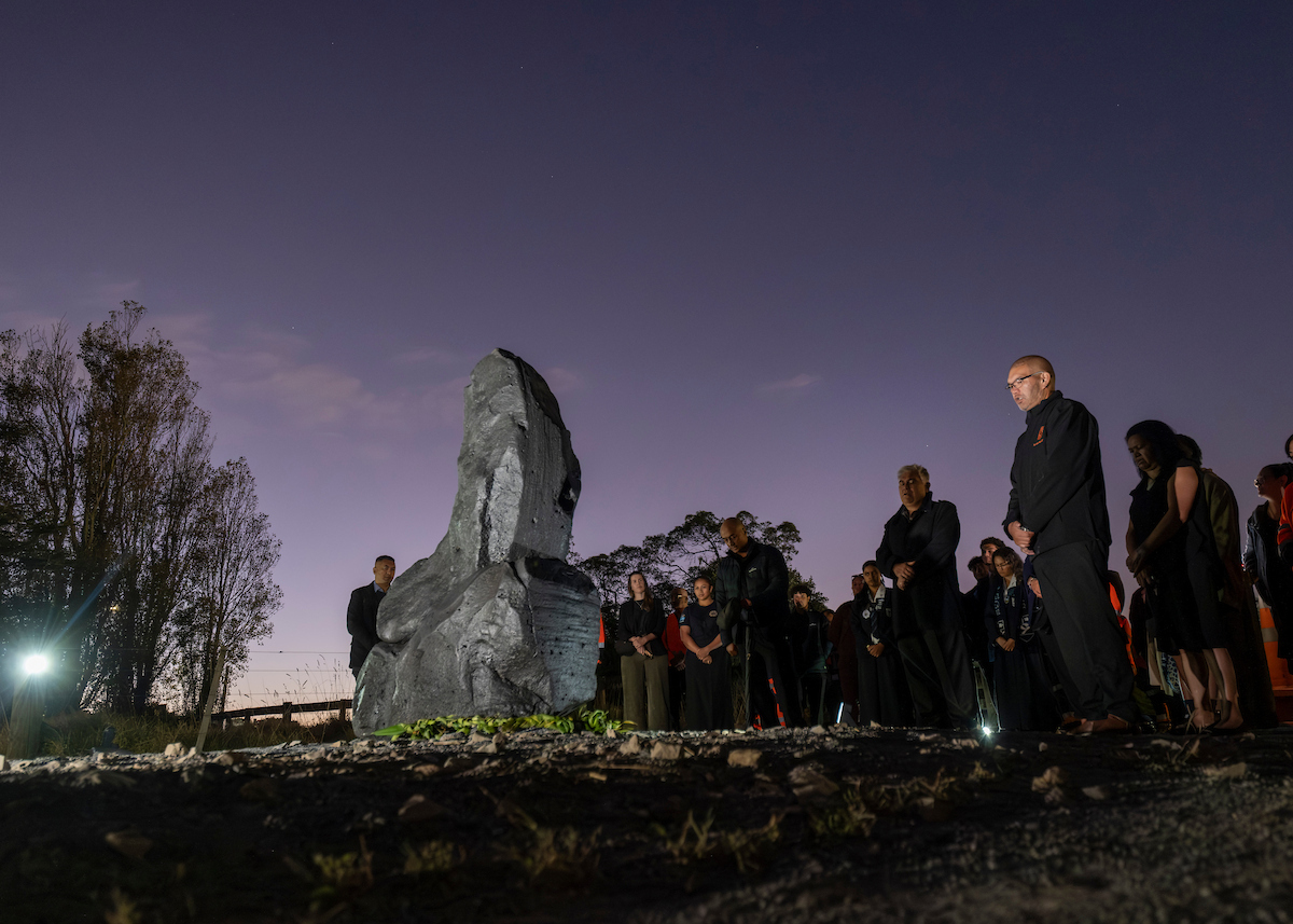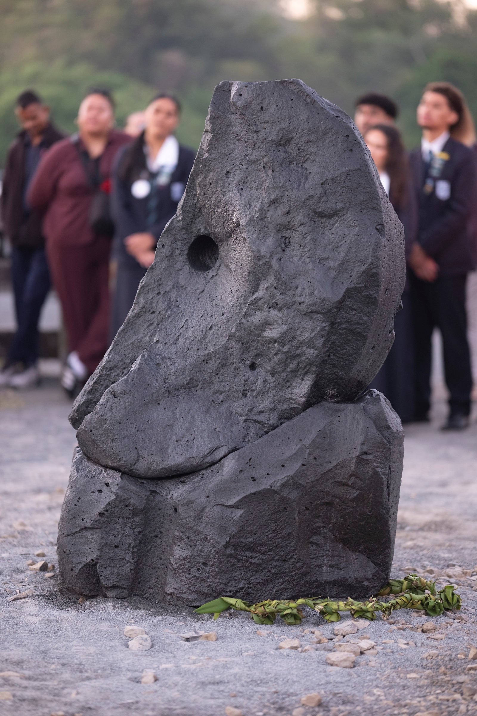 On a crisp March morning, as the first light of day gently spread across the sky, the quiet anticipation of the crowd filled the air. The soft glow of dawn illuminated the space, casting long shadows across the ground, creating a serene atmosphere as the Te Punga sculpture was unveiled.