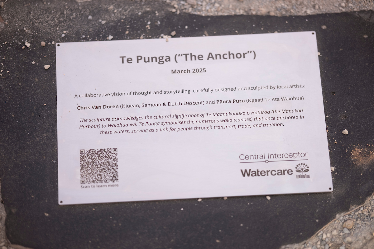The sculpture, meaning "The Anchor" - symbolises a waka anchor, as a reference to the area being a traditional waka trading route, was revealed in a ceremony that included Māngere College students, Mana Whenua, Māngere-Ōtāhuhu Local Board, Watercare and local community members.
