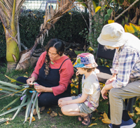 The park is broken up into play zones. For bigger kids, there’s a ball area with a small basketball half court and te reo four-square court, while smaller kids have their own space with a climbable cubby house and interactive play boards. Families of kids with accessibility needs will love the carousel, and the basket swing is great for preschoolers. The harmony bell and talking tubes spark conversation and creativity. Shade sails and a drinking fountain ensure that even in the height of summer, kids can stay cool.