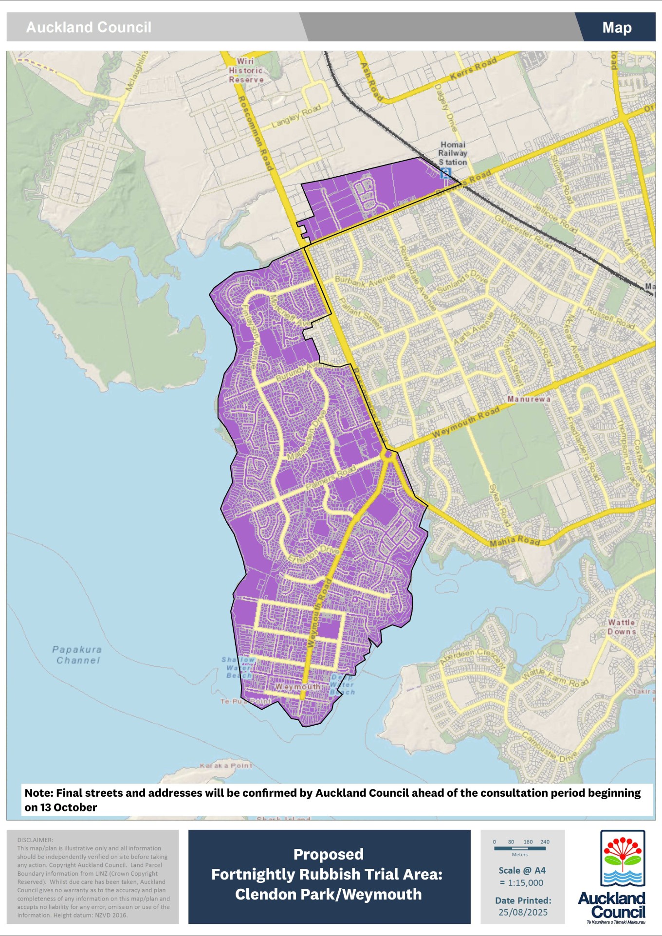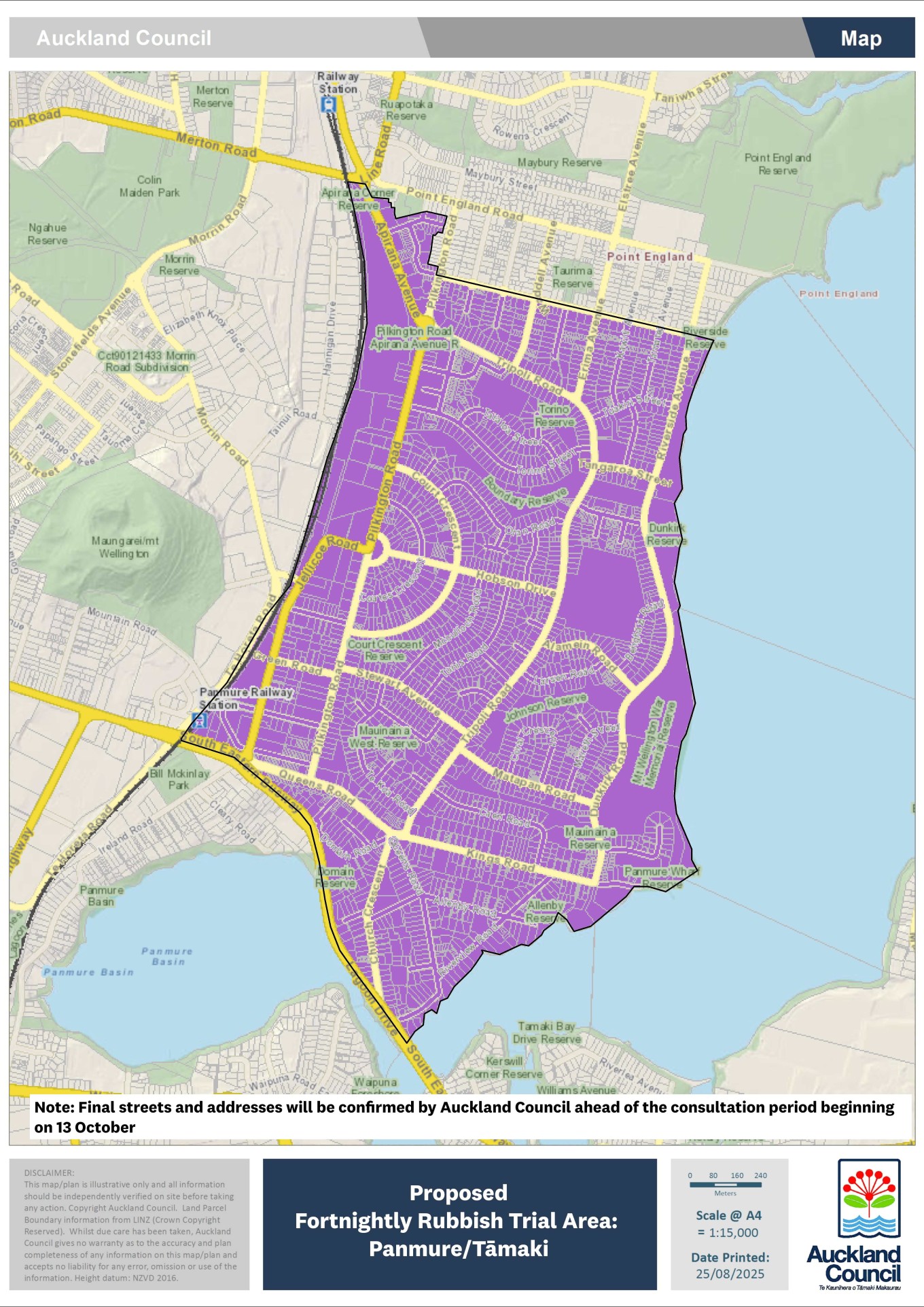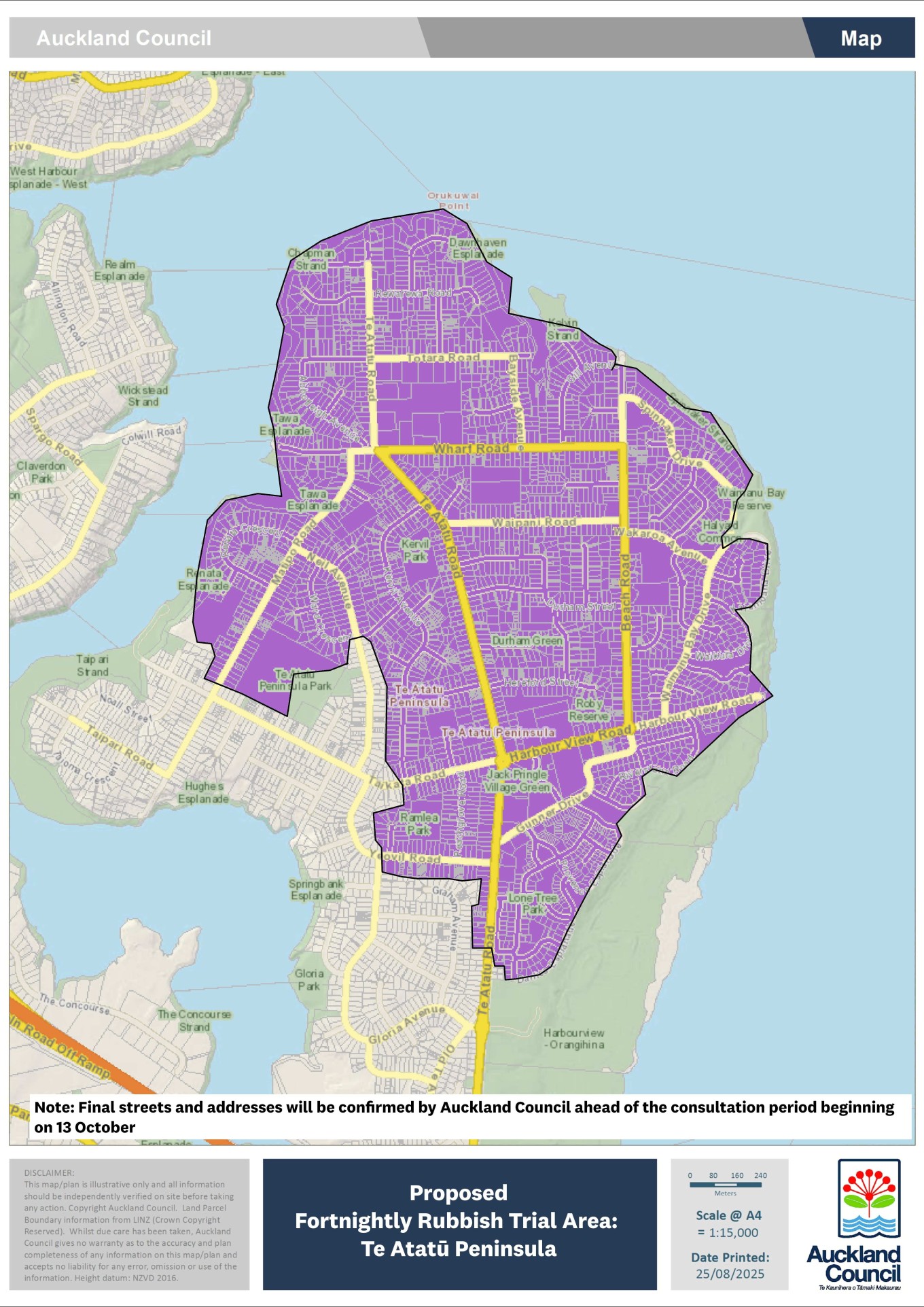 Consultation will open from 13 to 31 October 2025, giving Aucklanders the chance to provide feedback on the proposed trial. More information on the proposal will be available in the consultation materials. Affected households and ratepayers will be contacted directly about the proposal to seek their feedback.
